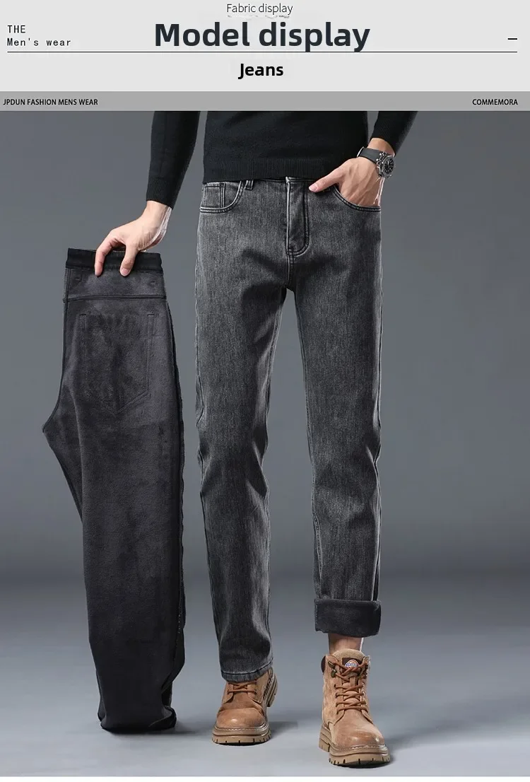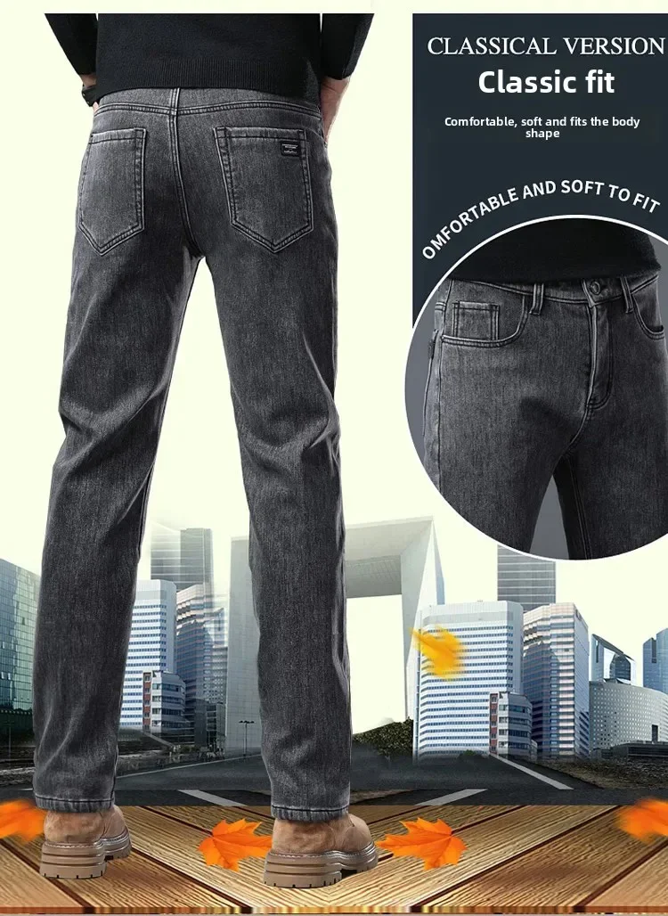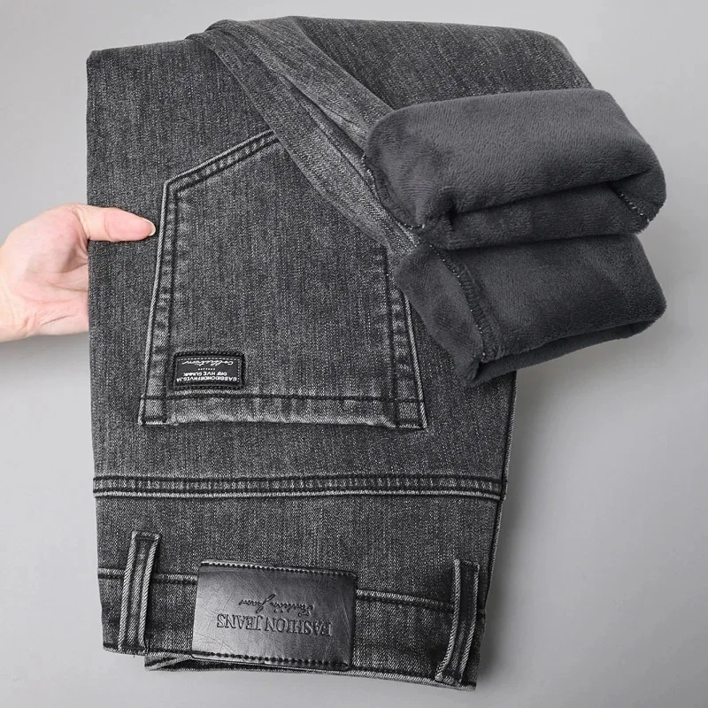 Winter Warm Jeans Men’s Slim Straight Elastic Denim Pants Casual Male Clothing Fashion Plush Trousers New Hot Sale Fashion Jeans
