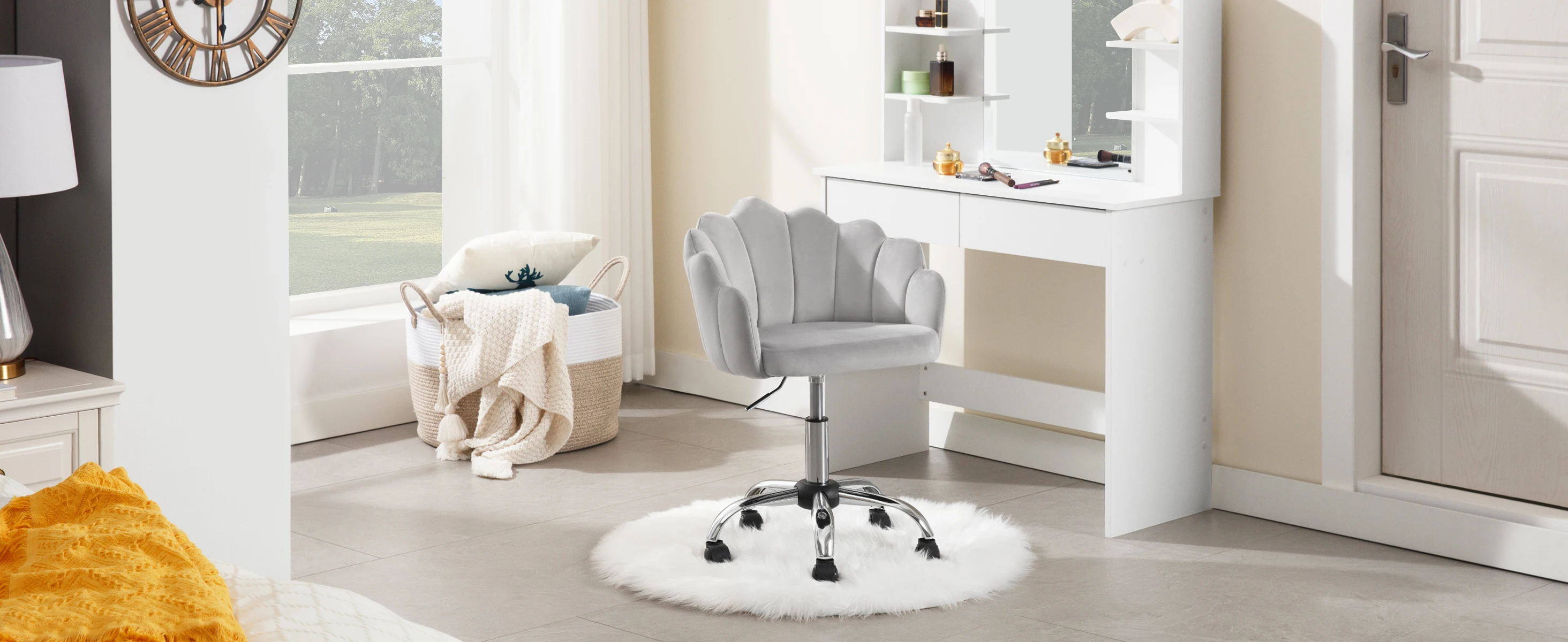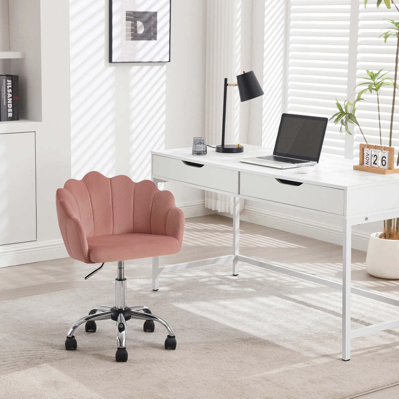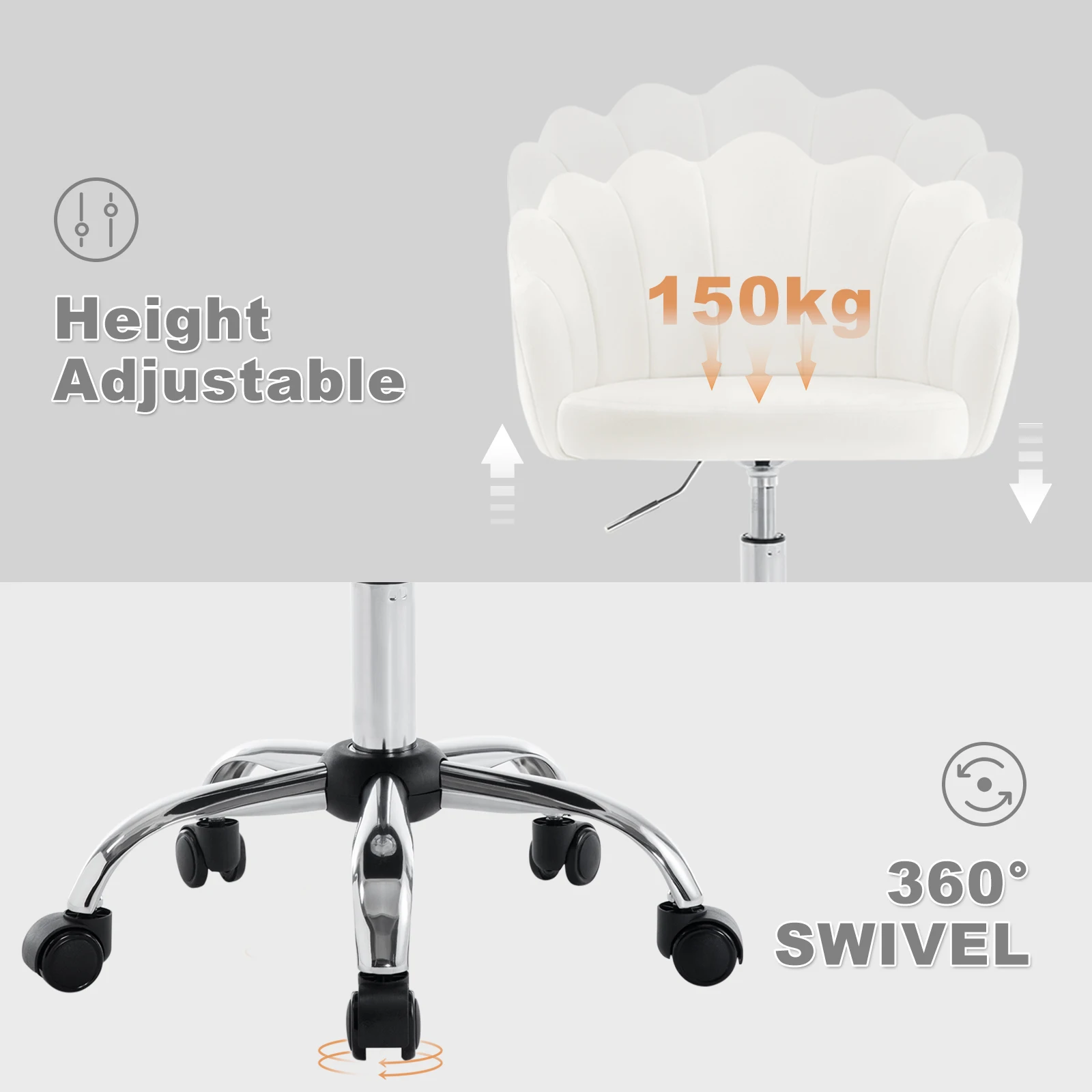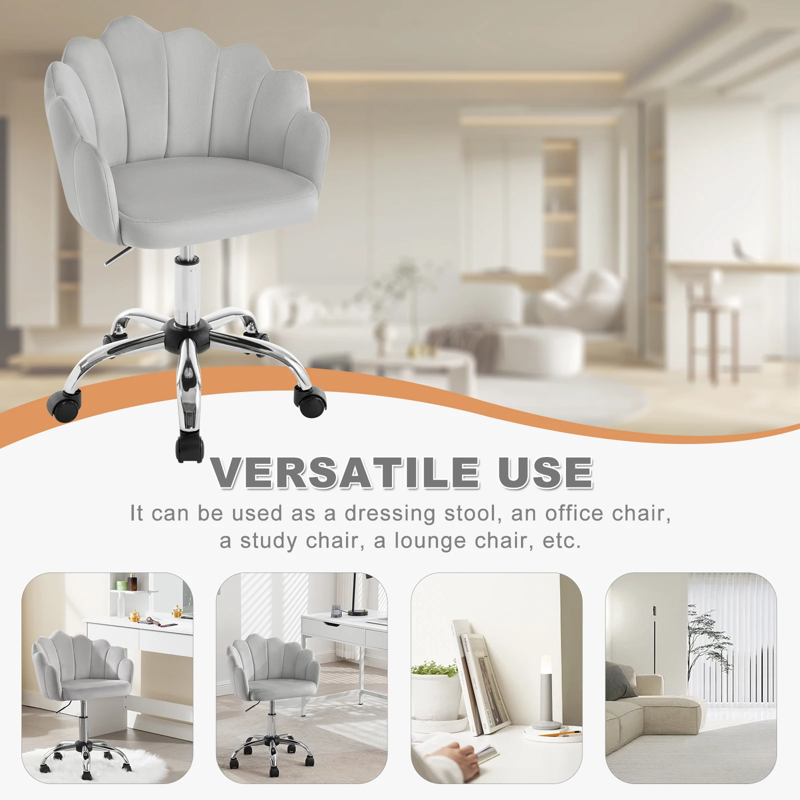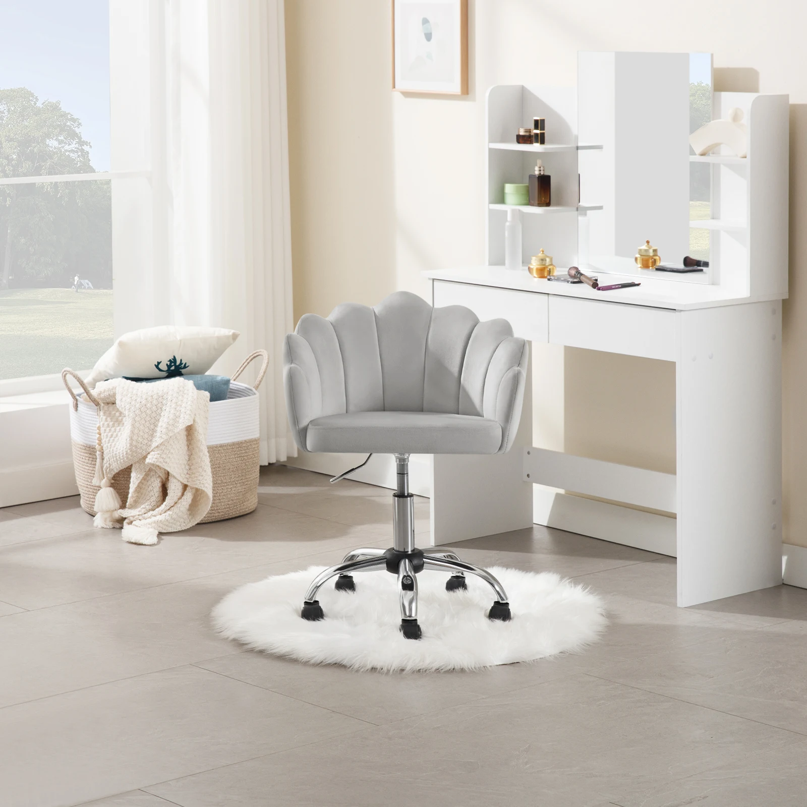WOLTU Velvet Swivel Dressing Chair Ergonomic Desk Chair with Petal Backrest Wheels Height Adjustable Shell Armchair