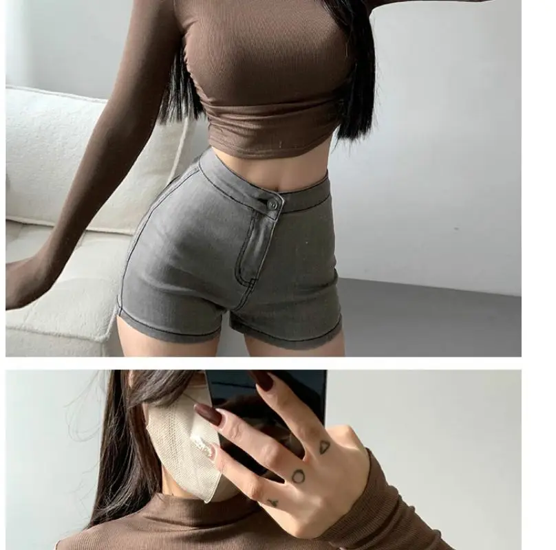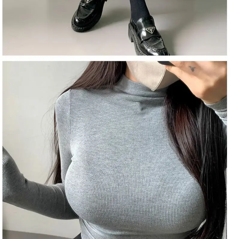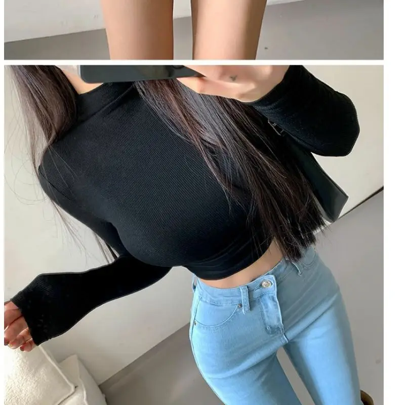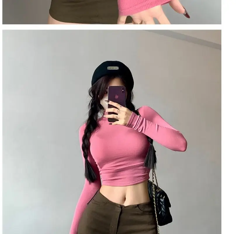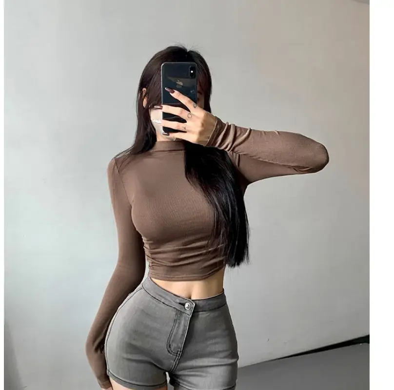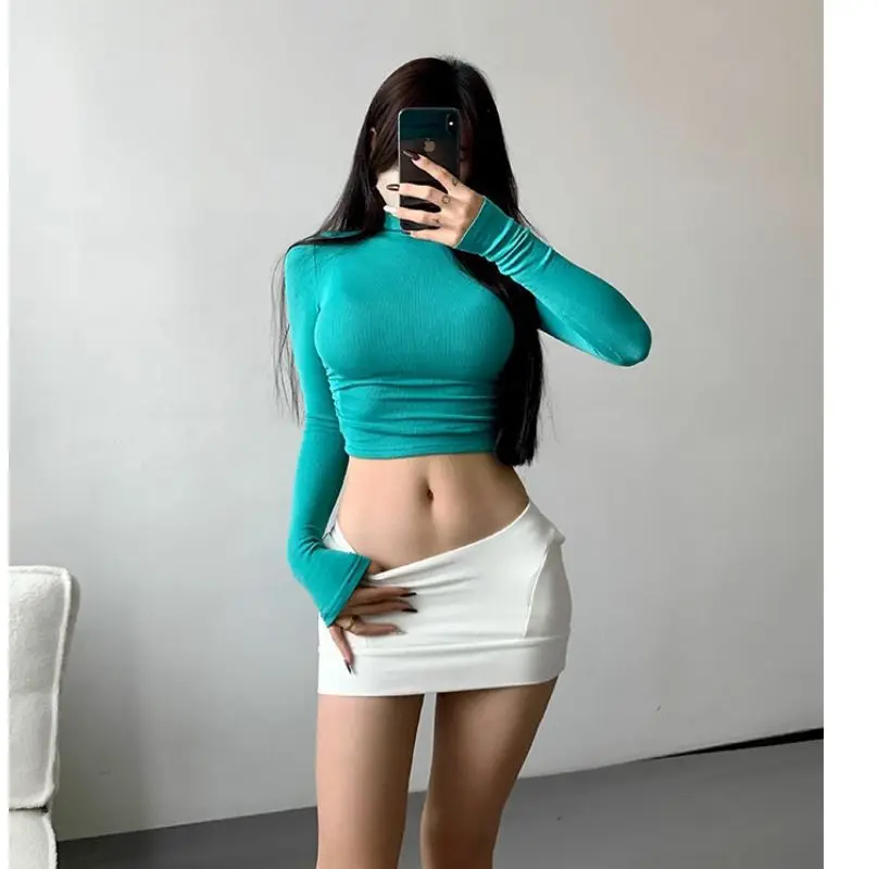 Womens Long Sleeve Turtleneck T Shirts Ribbed Tight Knit Sexy Slim Fitted Casual Women’s Basic Crop Tops Cropped T-Shirt