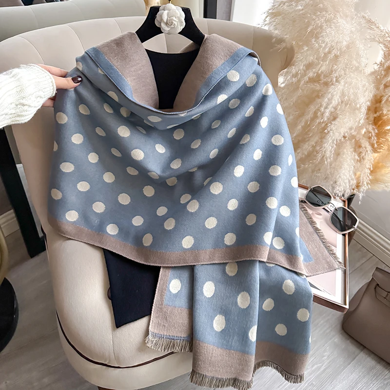 Women’s Luxury Faux Cashmere Scarf Dot Pattern Warm Thick Pashmina Blanket Poncho Fashion Print for Autumn Winter